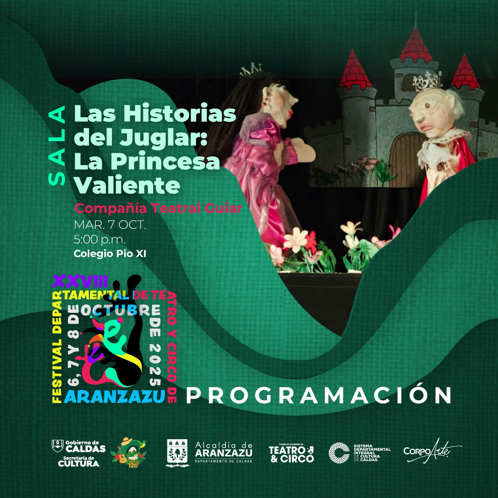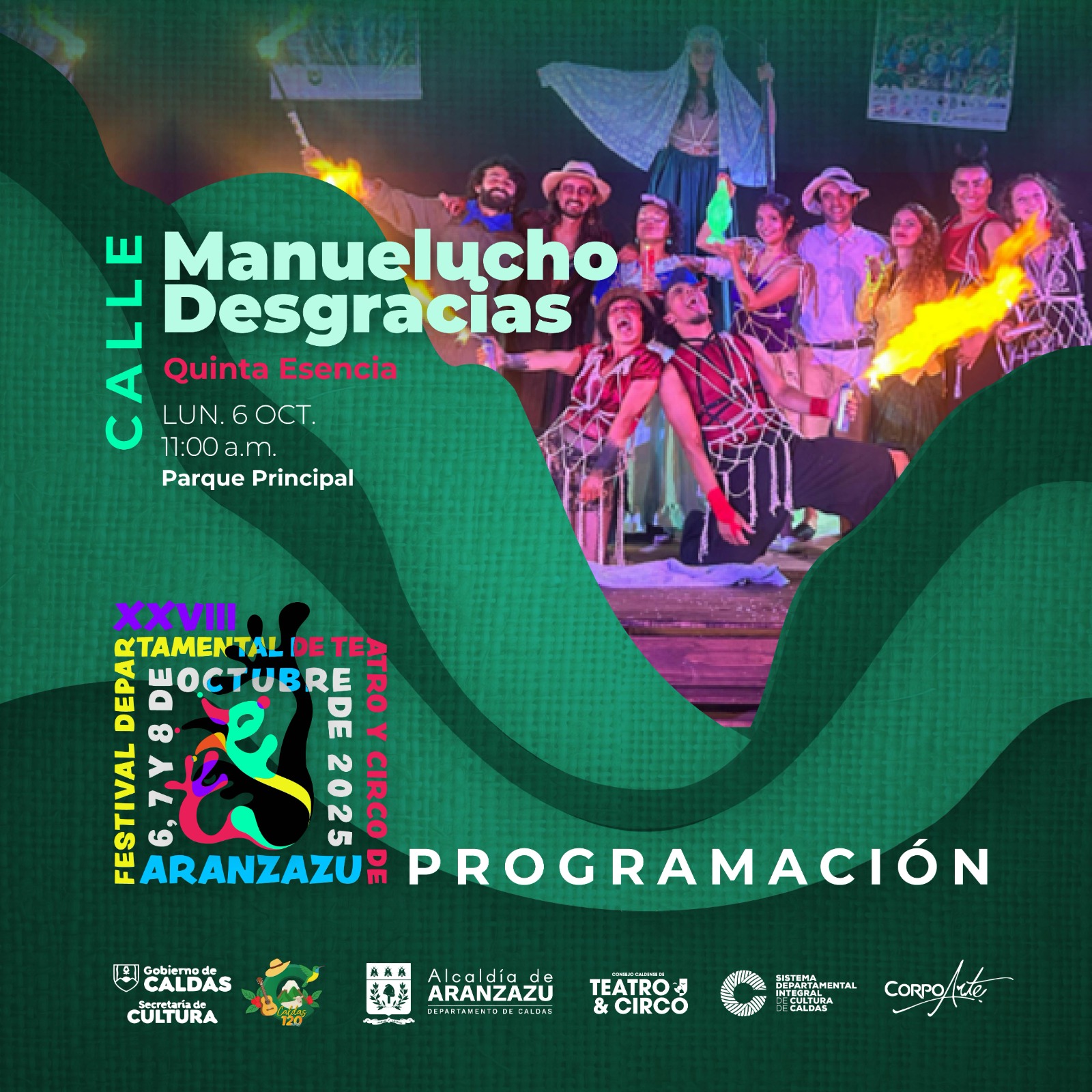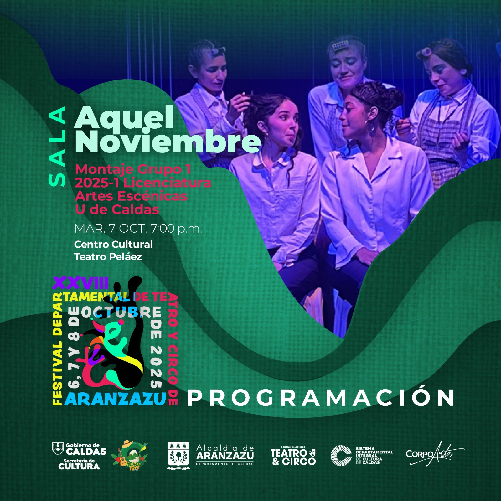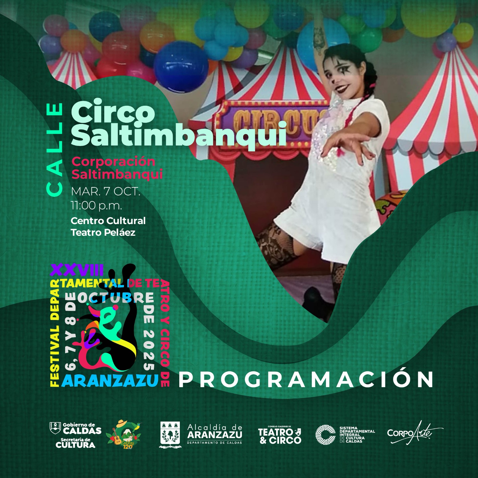El Festival Departamental de Teatro y Circo de Caldas es el evento que reúne a diferentes montajes del teatro y el circo caldense, tanto procesos en construcción como también aquellos de formación que se llevan a cabo en el departamento. Para el 2025 el Festival llega a su versión número 28 y se realiza en el municipio de Aranzazu con 10 obras.